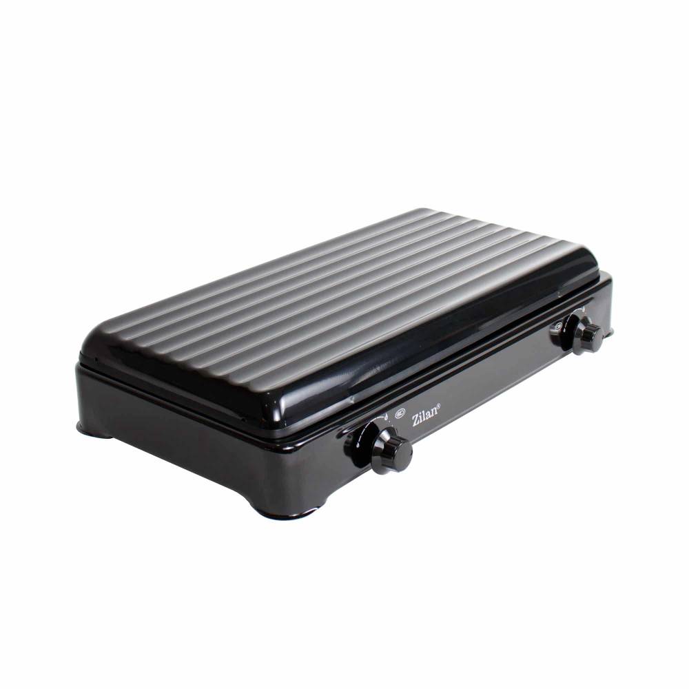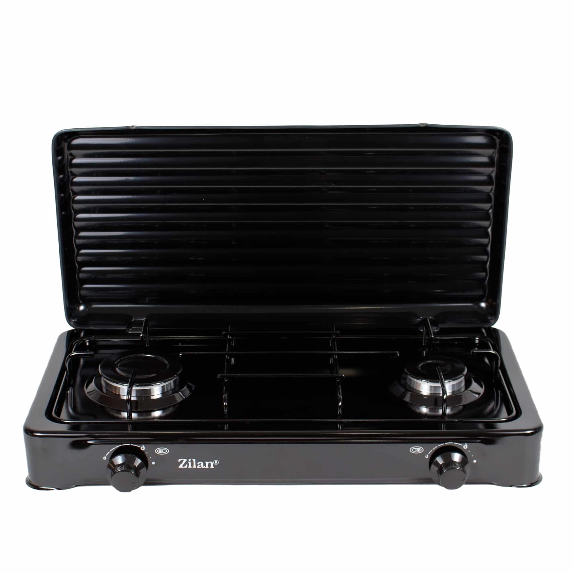 Aragaz cu 2 ochiuri, pentru butelie, cu capac, Negru