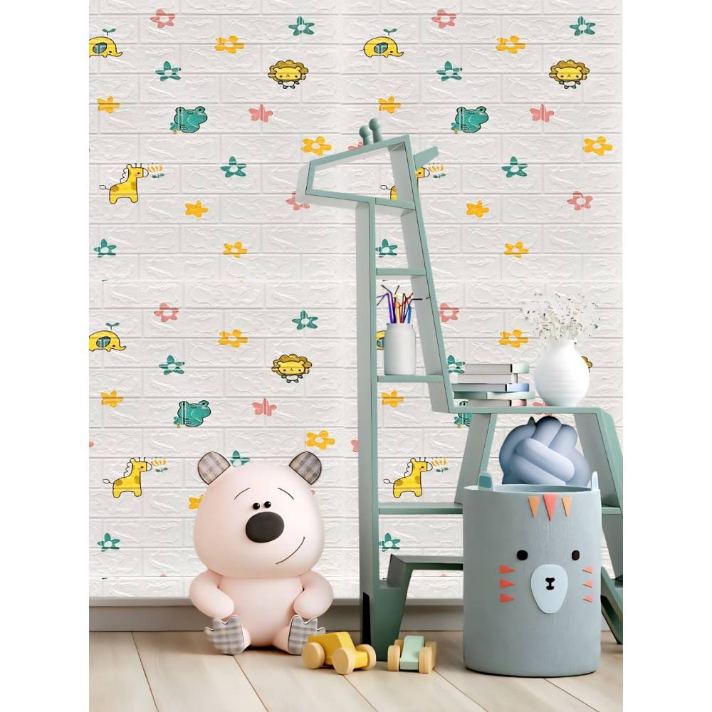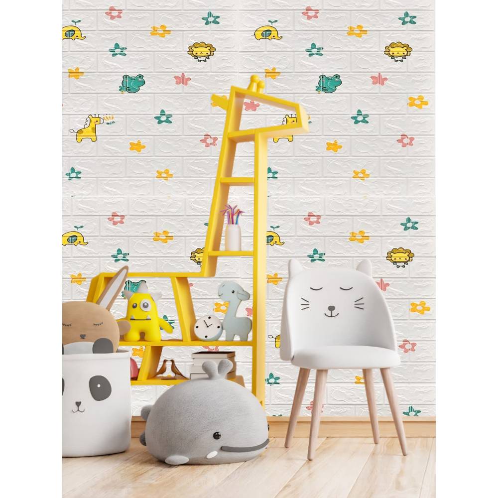 Tapet 3D autoadeziv, 70x77cm, Model Animale si flori, Alb, 10buc/set