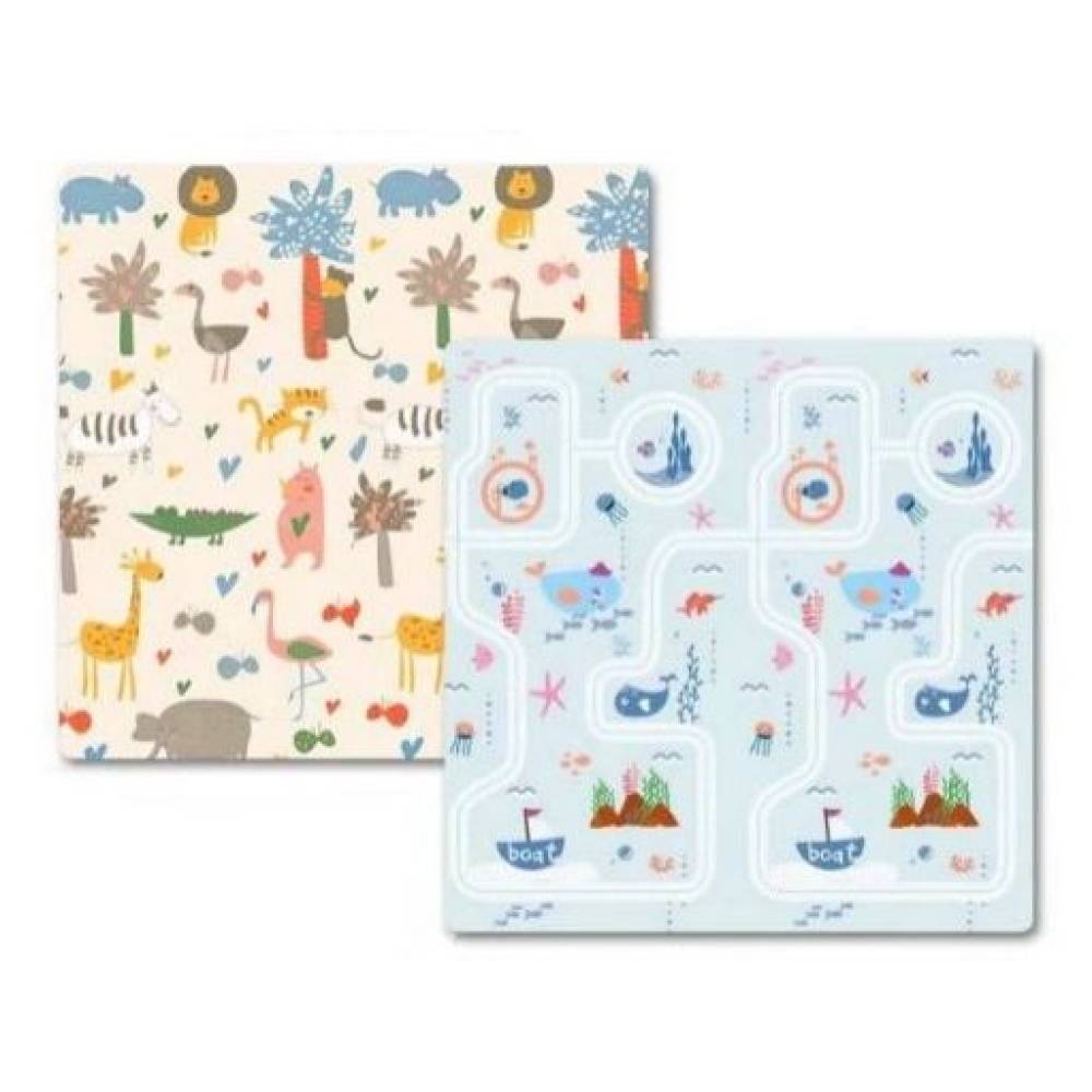 Covoras de joaca termic pentru copii, 2 fete, animale si calatorie pe mare, 180x200cm