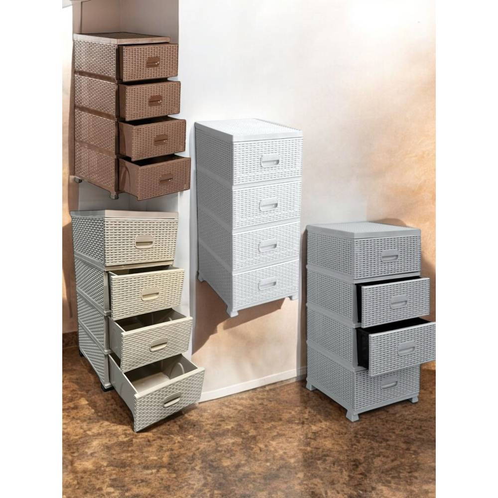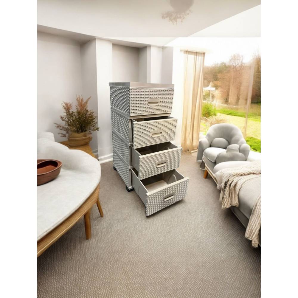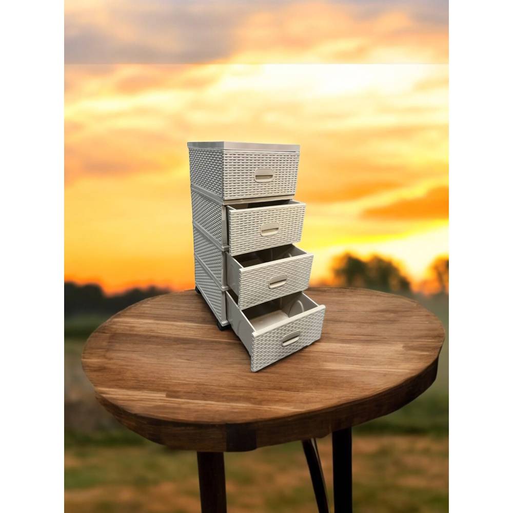 Dulap depozitare plastic 4 sertare tip ratan bej