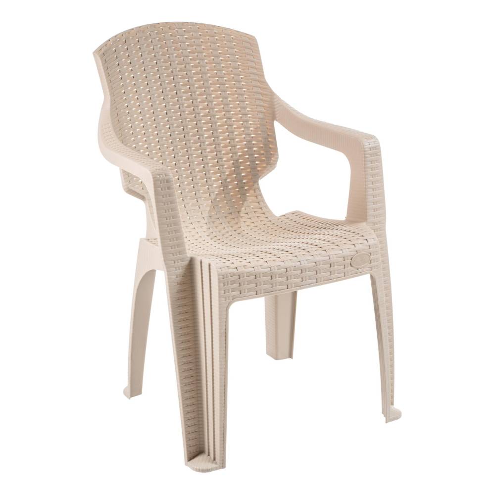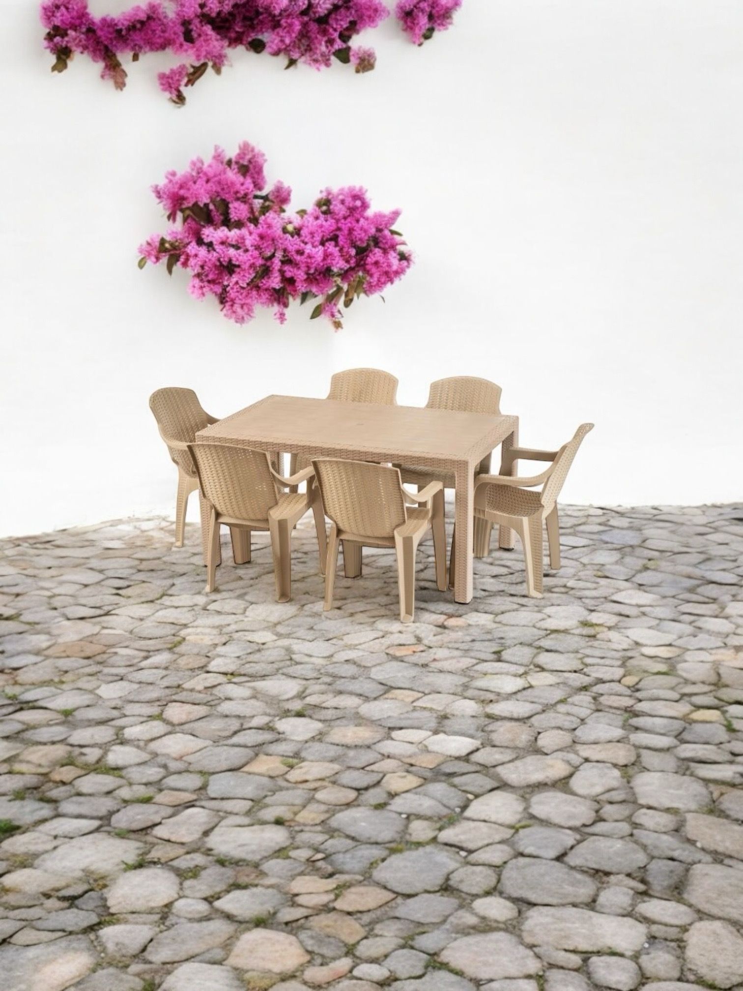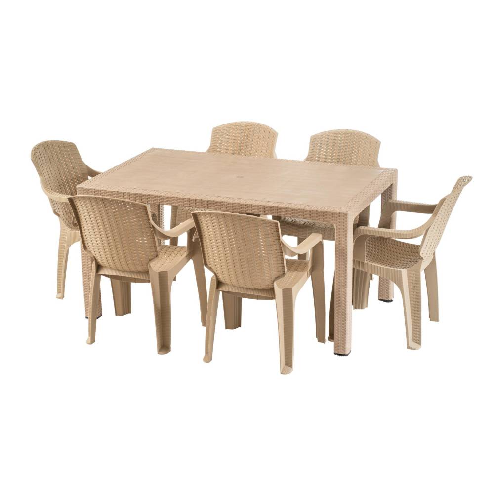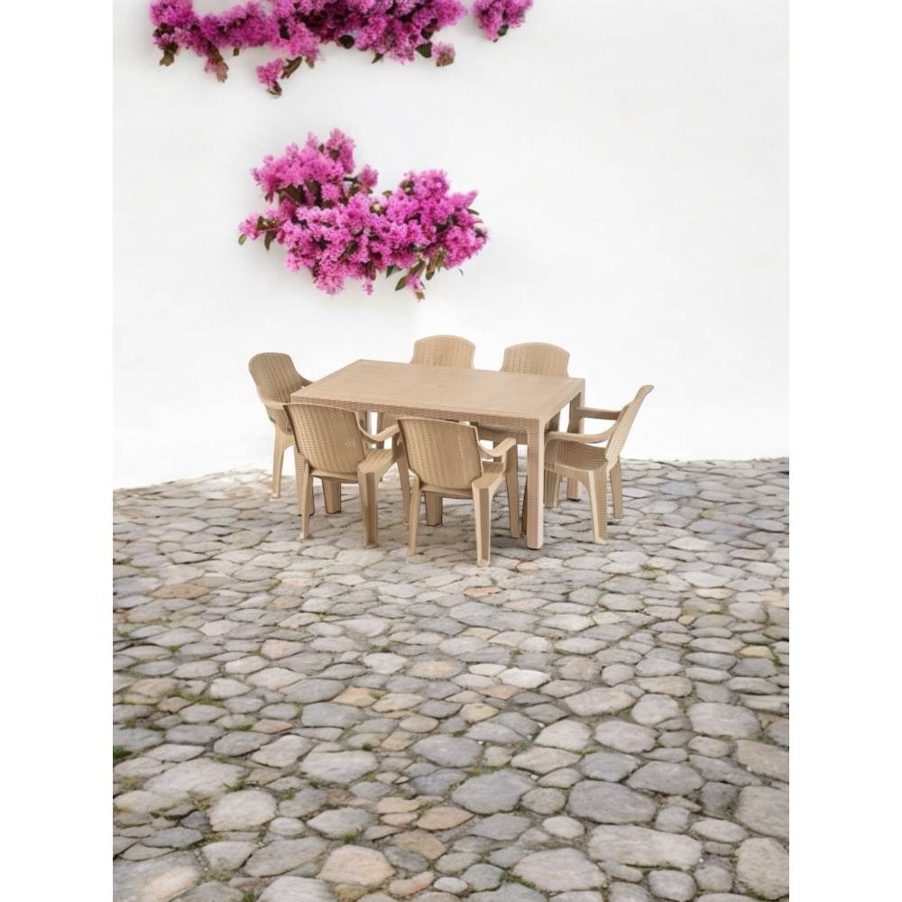 Masa cu scaune terasa tip ratan (crem) set 6 pers, exterior