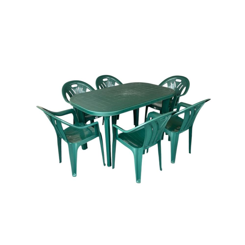 Masa cu scaune terasa verzi, set 6 pers, exterior