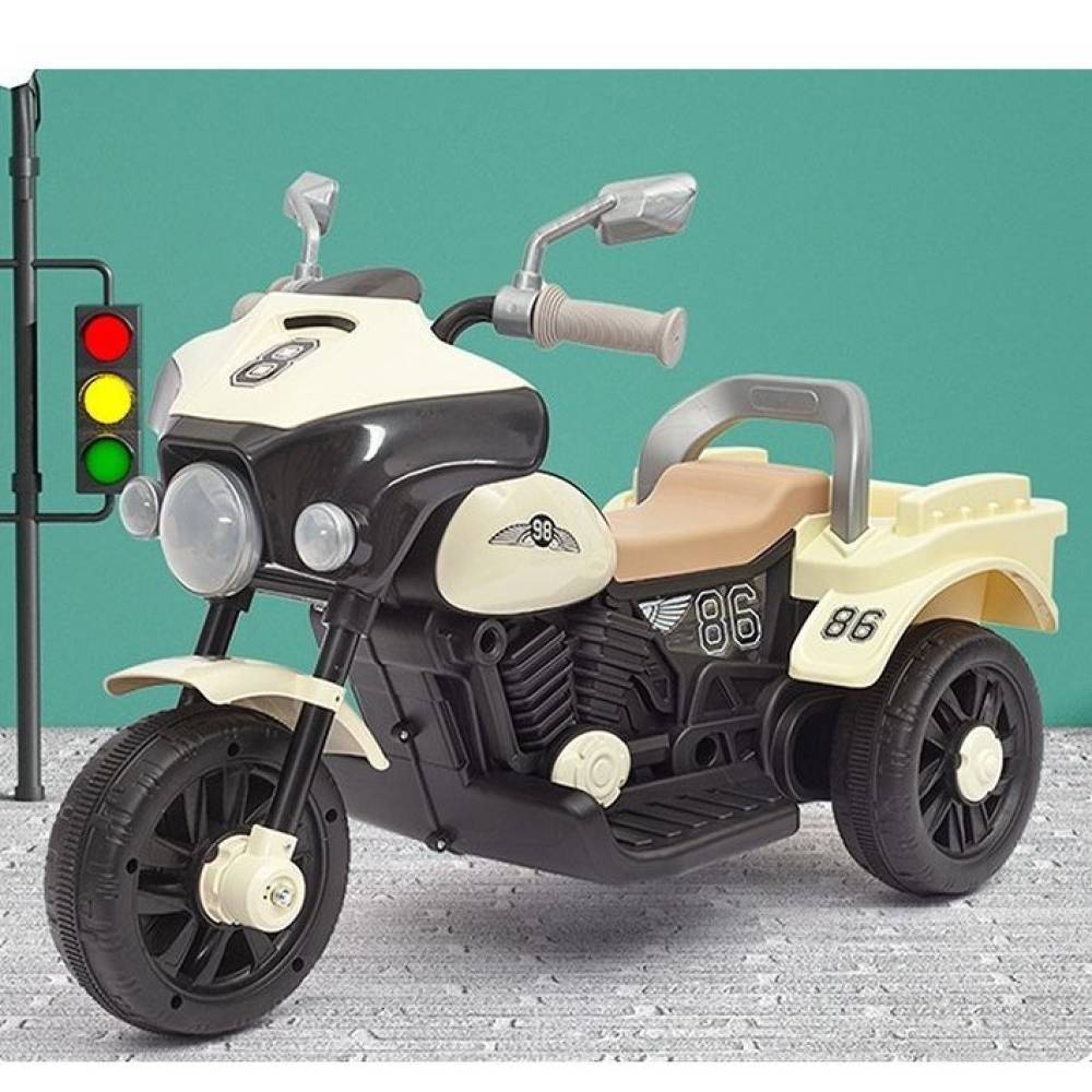 Motocicleta electrica pentru copii 1-8 ani, cu lumini, sunete, Alb-Bej