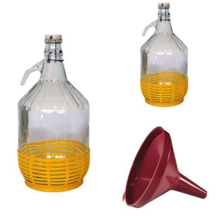 Pachet 2 x damigeana 5 L (litri) sticla, dop cu sarma ermetic + Palnie 20cm