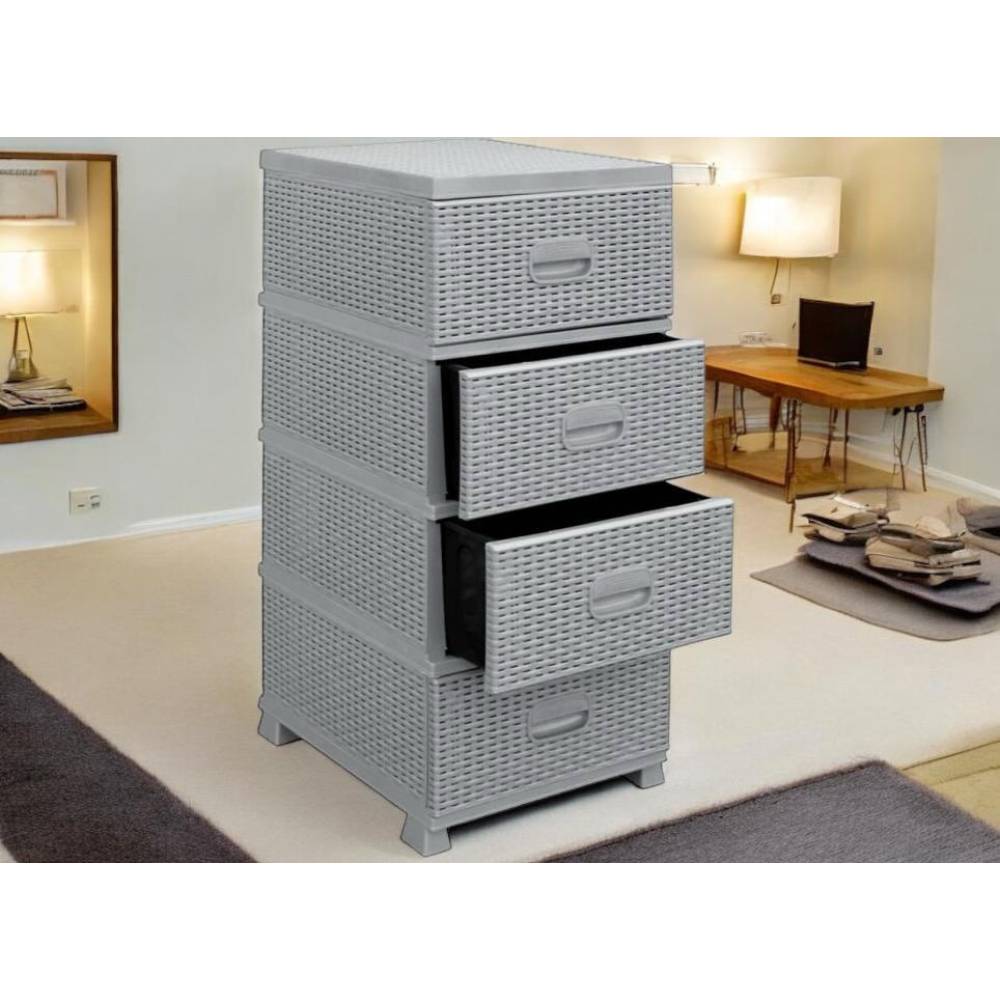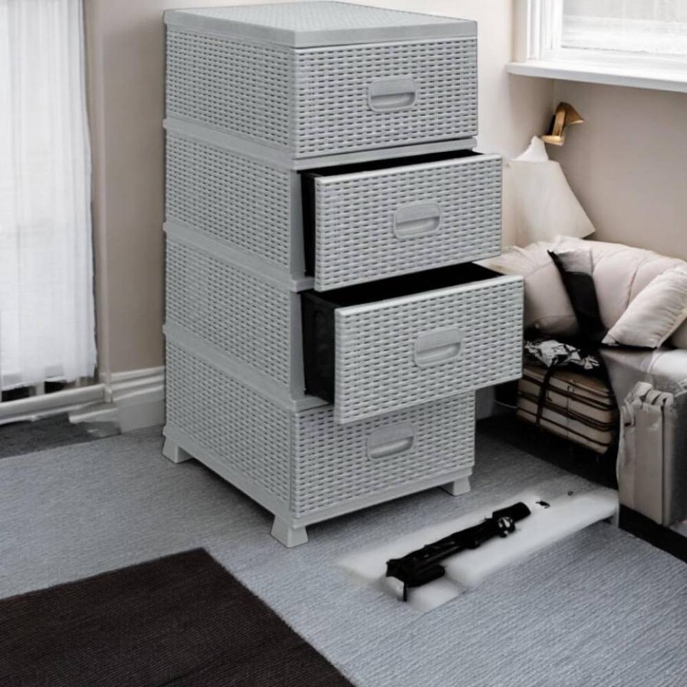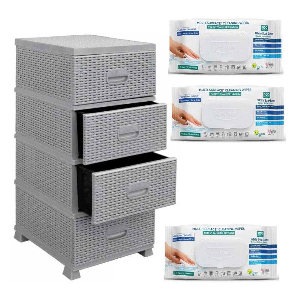 Pachet dulap depozitare 4 sertare tip ratan gri + 3 Servetele bicarbonat si otet