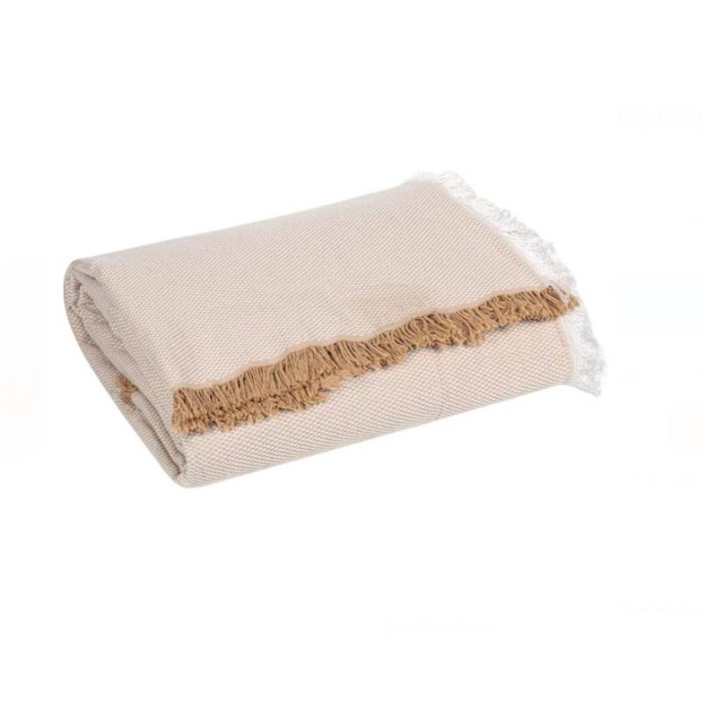 Patura decorativa bej cu franjuri albe/bej, 180x160 cm