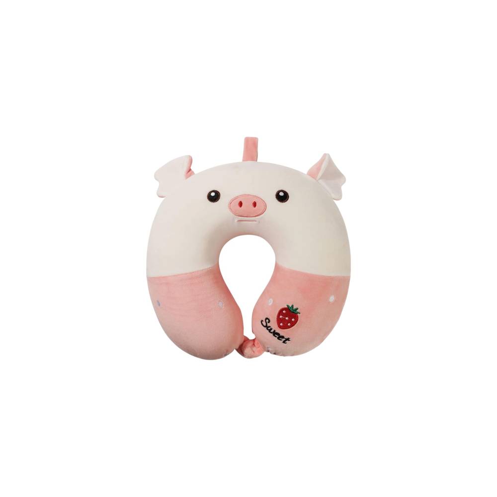 Perna de Calatorie pentru Gat si Cap, Umplutura din Spuma cu Memorie, Model Purcelus, Roz