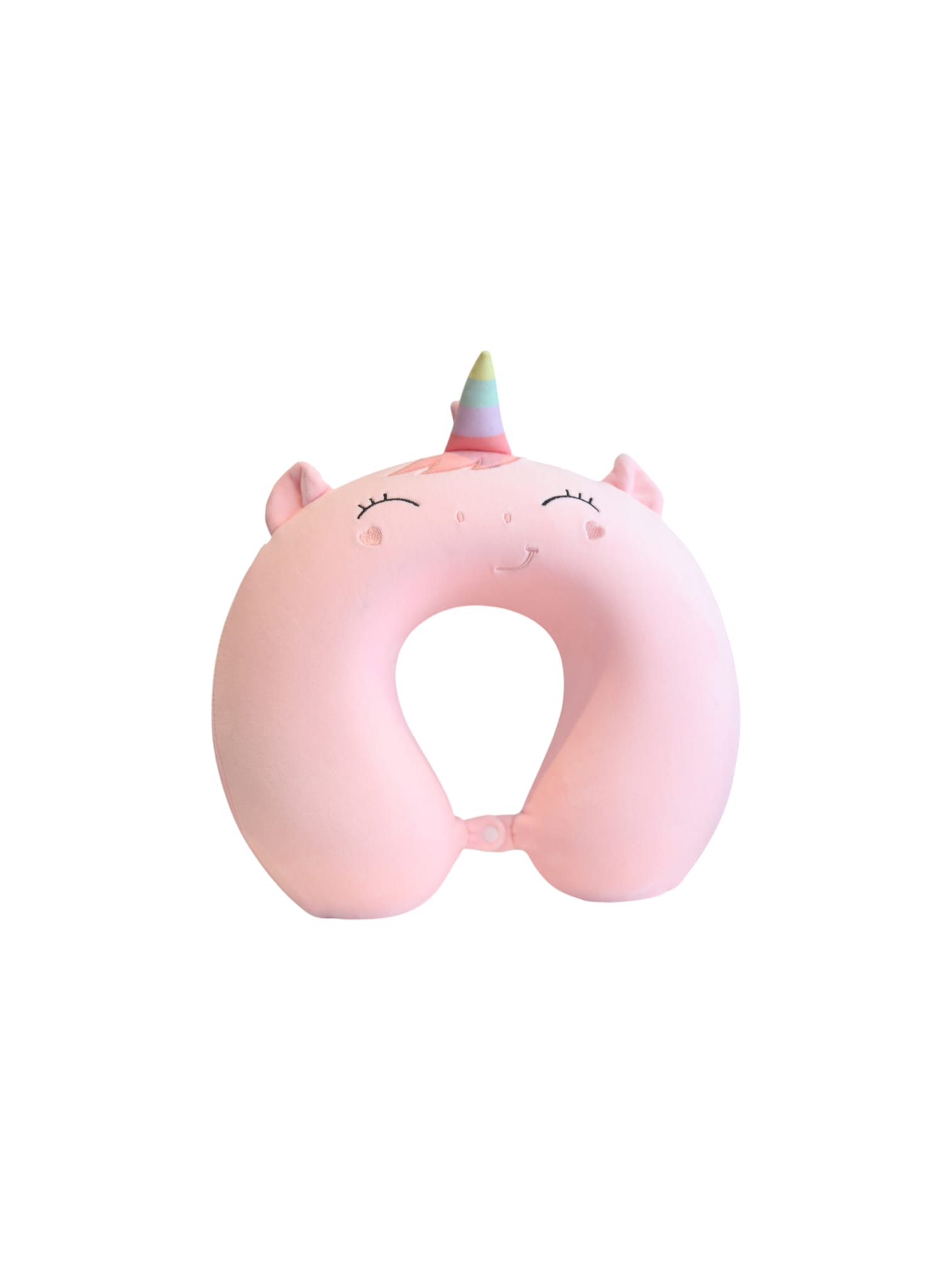 Perna de Calatorie pentru Gat si Cap, Umplutura din Spuma cu Memorie, Model Unicorn, Roz