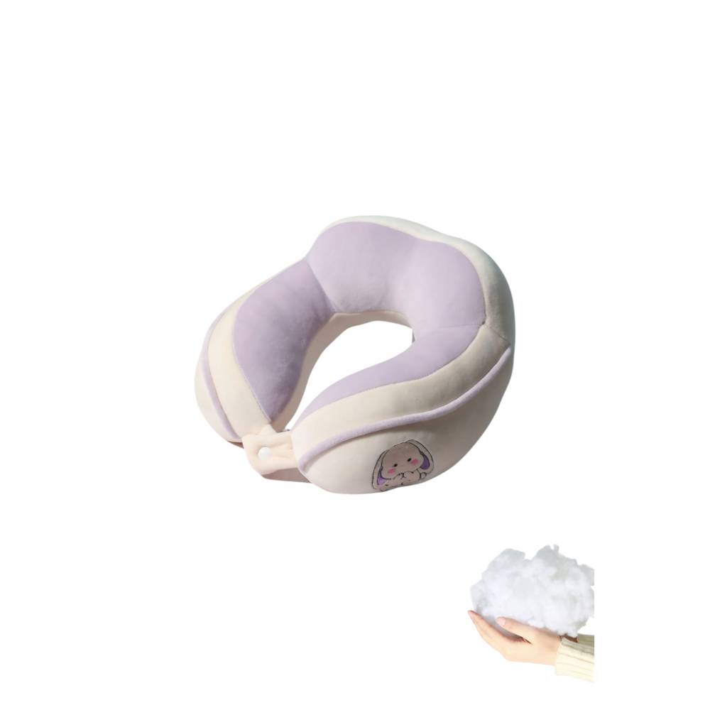 Perna de Calatorie pentru Gat, Umplutura cu Bumbac, Model Brodat Iepure, Lila
