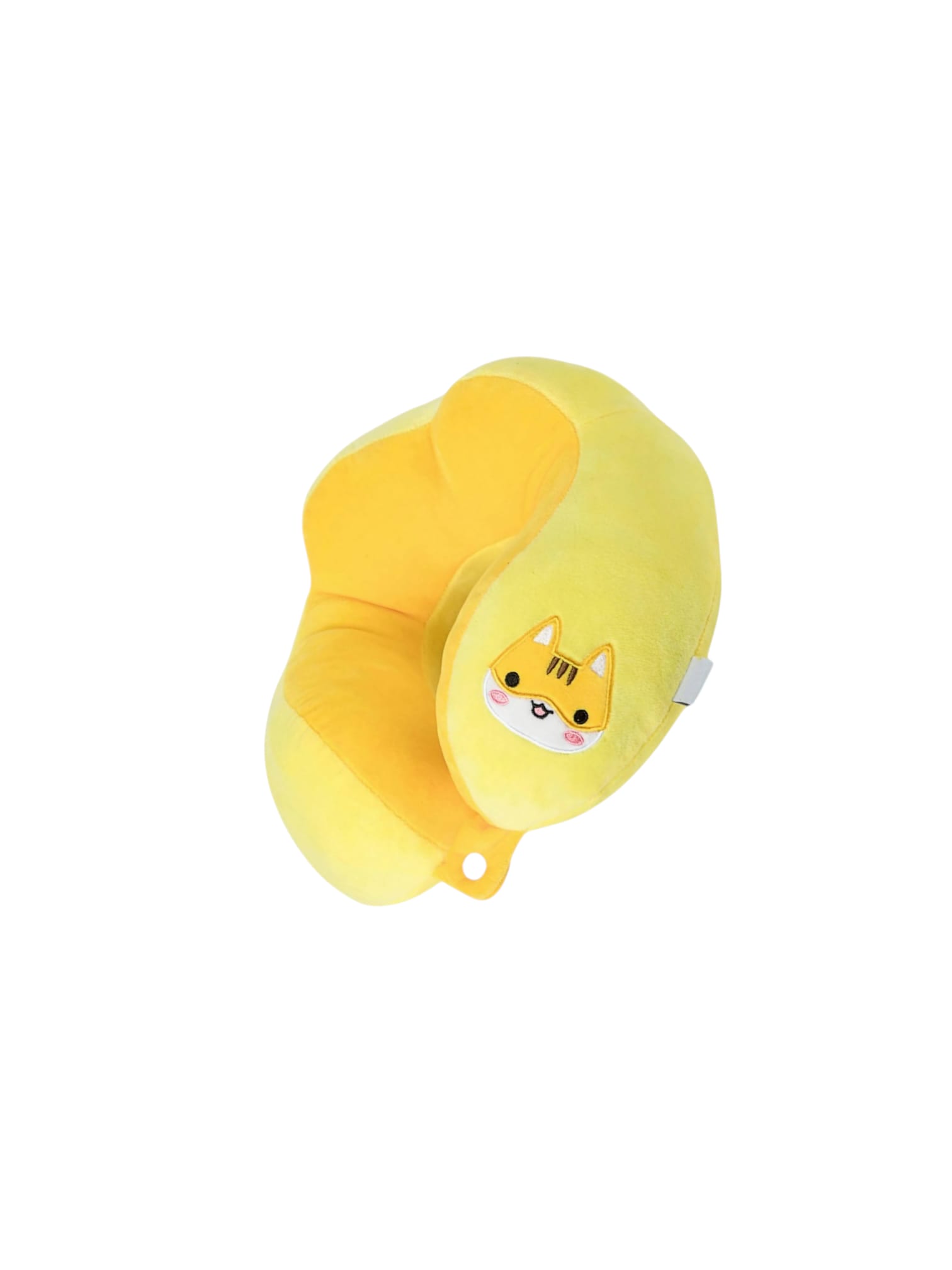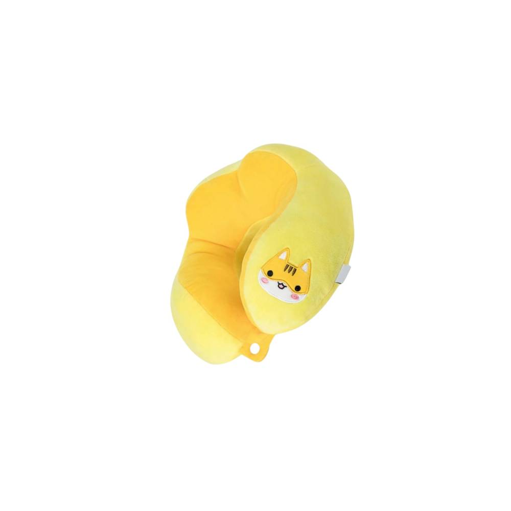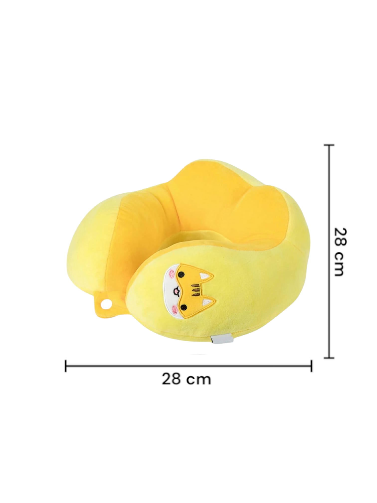 Perna de Calatorie pentru Gat, Umplutura cu Bumbac, Model Brodat Pisica, Galben