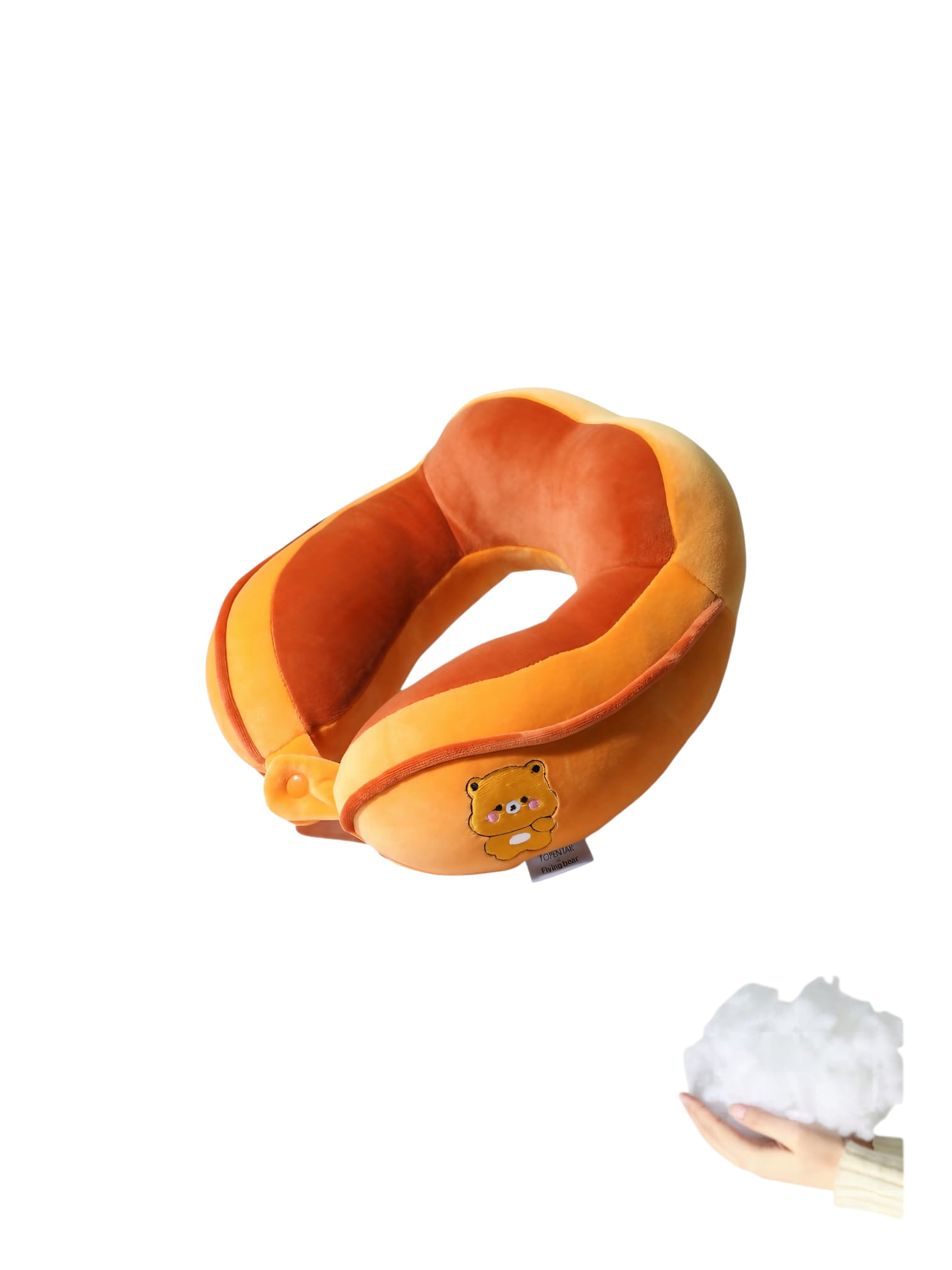 Perna de Calatorie pentru Gat, Umplutura cu Bumbac, Model Brodat Urs, Portocaliu