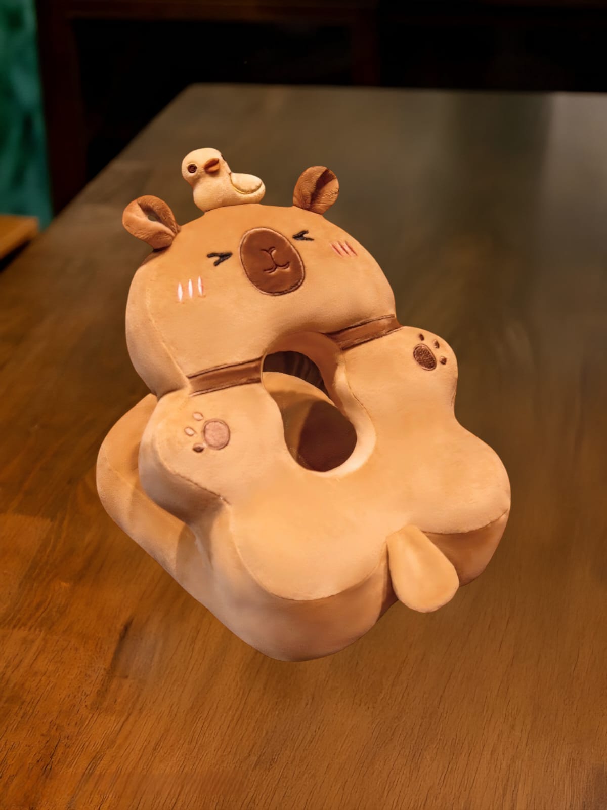 Perna din Spuma pentru Birou si Calatorii, Model Capybara, Umplutura Bumbac, Suport Cap, 30x35x30 cm, Portocaliu