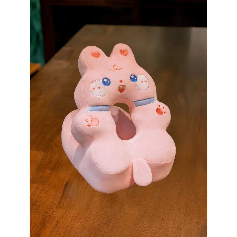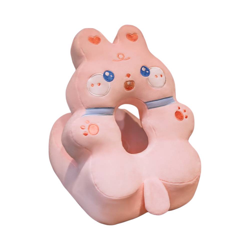 Perna din Spuma pentru Birou si Calatorii, Model Iepure, Umplutura Bumbac, Suport Cap, 30x35x30 cm, Roz