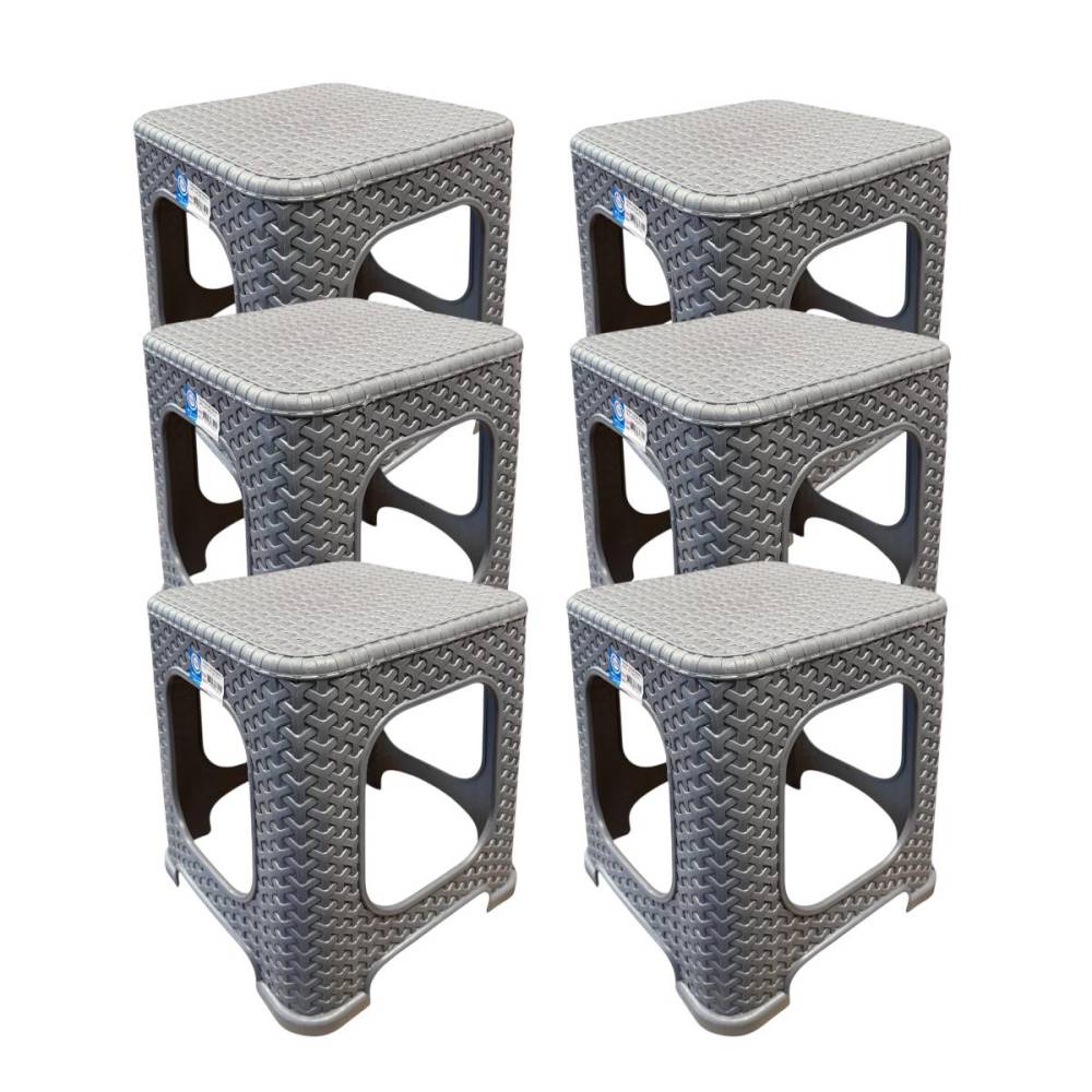 Set 6 x taburet plastic (scaun bucatarie) 45 cm tip ratan gri