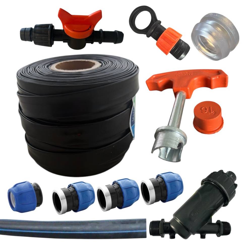 Sistem picurare banda 10 cm / 100m cu duze, 1.6 l/h, 35 accesorii