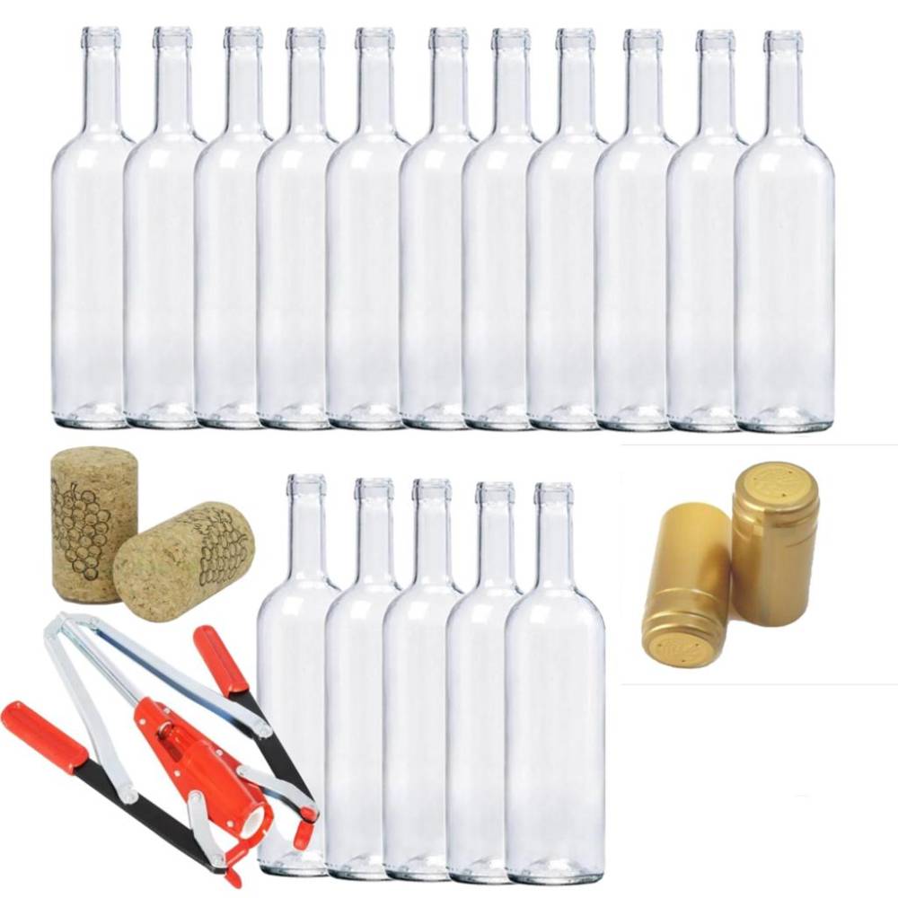 Sticle de vin 750 ml, 16 buc cu dopuri pluta, dopuitor si capisoane