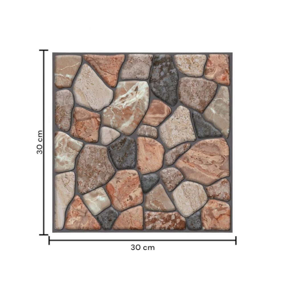 Tapet 3D autoadeziv, 30x30cm PVC, imitatie piatra, Caramiziu, 10buc/set