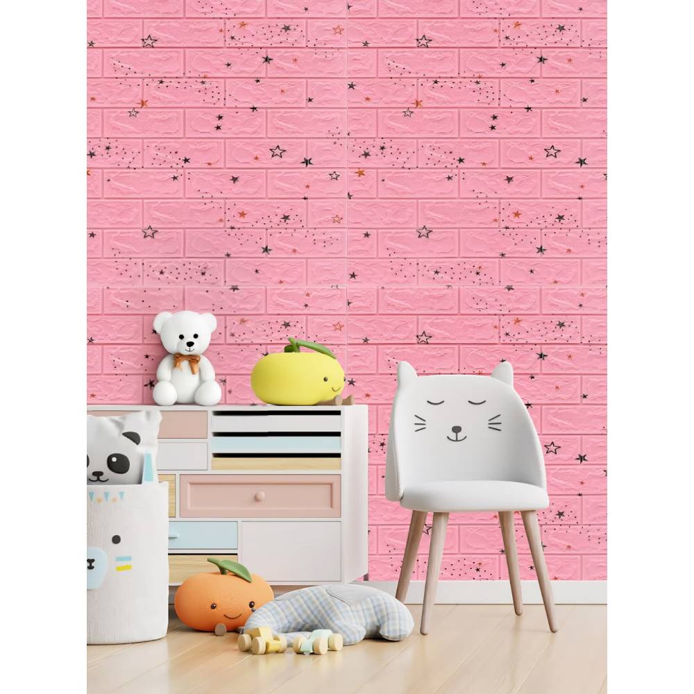 Tapet 3D autoadeziv, 70x77cm, Caramida, Model Stele, Roz, 10buc/set