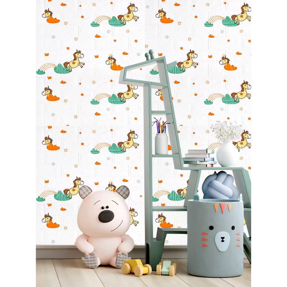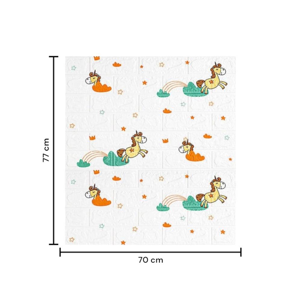 Tapet 3D autoadeziv, 70x77cm, Model Unicorni, Alb, 10buc/set