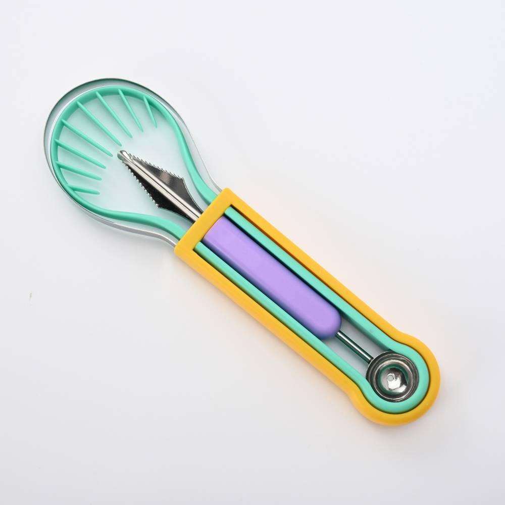 Ustensila pentru taiat si decorat fructe, Inox, multicolor 4 in 1
